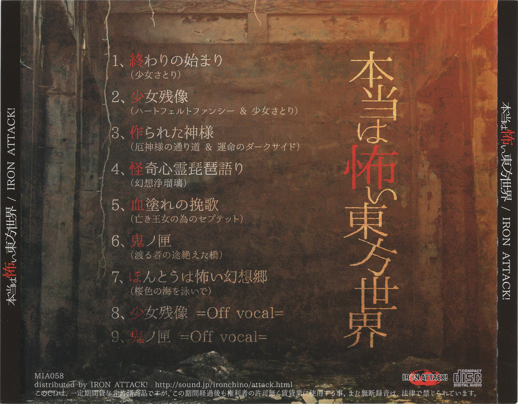 | - | (07) [まいなすいょん] ほんとうは怖い幻想郷.flac | 26133191 | 2025-09-21 18:21:22 |